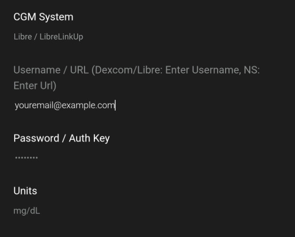 Now you need to configure the CGM app with your LibreLinkUp credentials.