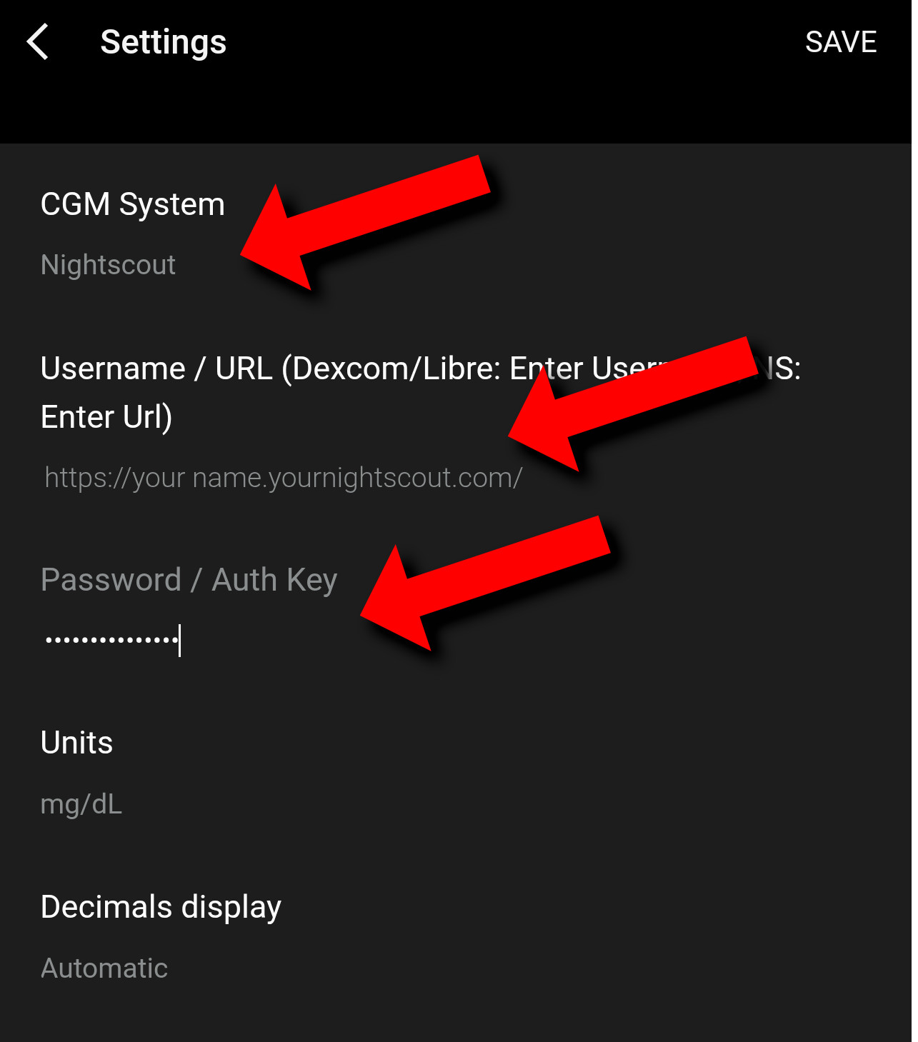 Now you need to configure the CGM+ app with your Nightscout site information.