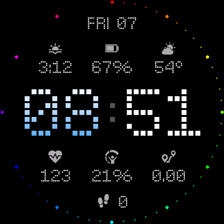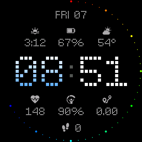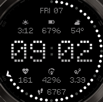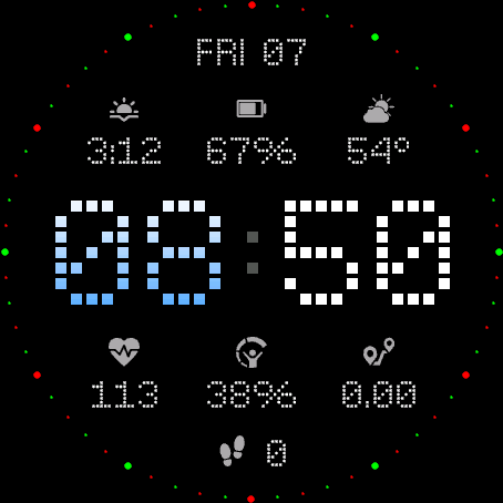 The watchface offers three different progress dial styles, each with unique visual characteristics. You can also apply special color schemes to enhance the appearance.